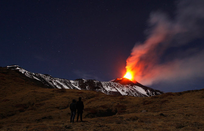 Извержение вулкана Энта — самого высокого действующего вулкана Европы, 23 ноября 2013