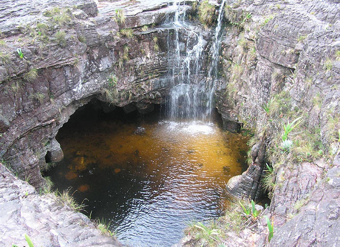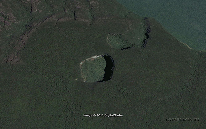 Воронки с кристально чистой водой встречаются повсеместно на многих тепуи.