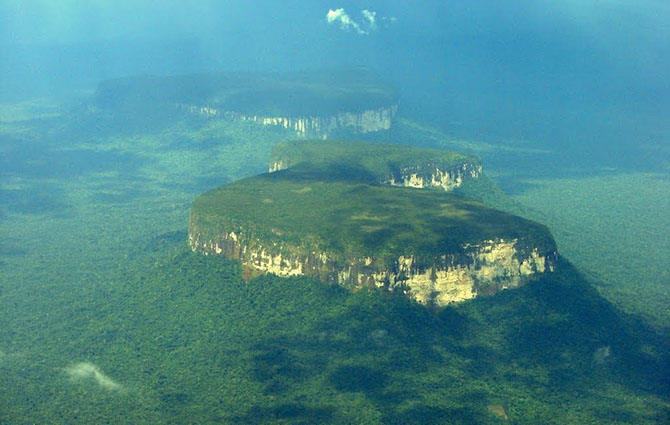 Например, каждая вершина горы действительно по-своему уникальна, так как на ней произрастают самые различные виды растений, сохранившихся аж с доисторических времён. Такое стало возможным только благодаря изоляции каждой горы друг от друга. Большинство из скал стоят на приличном расстоянии друг от друга, возвышаясь над зелёным полотном джунглей. Самые известные скалы: Ауятепуй, Рорайма и Аутана.
