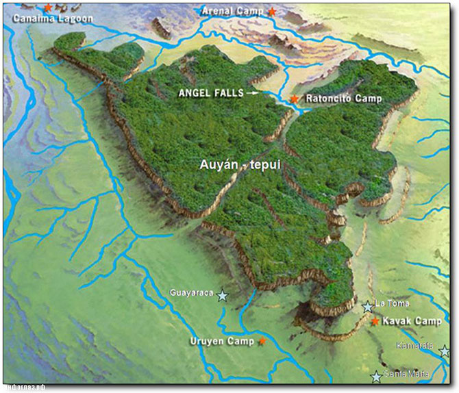 Кроме всего прочего, данная местность окутана ореолом тайн и загадок, о которых рассказывают не только древние легенды и мифы, но и отчеты нескольких экспедиций, организованных смелыми исследователями. Последняя крупная официальная экспедиция в эти труднодоступные места, а именно на гору Рорайма, была сформирована в 1965 году сыном знаменитого Хуана Анхеля, первооткрывателя высочайшего в мире водопада.