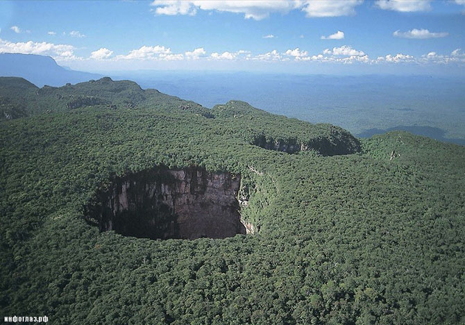 Похожие воронки имеются на нескольких тепуи, они образовались после того, как дожди промыли своды пещер, состоящих из песчаника.