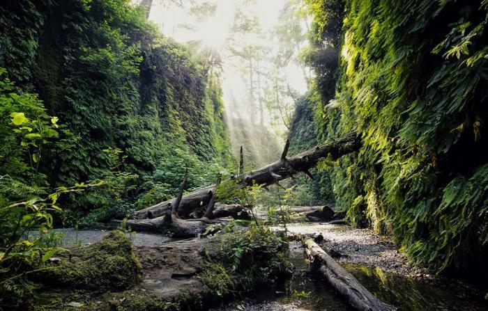 Прогулка по глубокому оврагу (от 9,1 до 15,2 м), известному как Ферн Каньон, который расположен в Prairie Creek Redwoods State Park. По описанию Michael S: «Непревзойденная природная красота вертикальных стен, покрытых папоротниками. Не похоже ни на какое другое место на Земле. Представьте, что проходите через узкий каньон, где стены полностью покрыты пышным папоротником, мхом, капелью и мини водопадами. Незабываемое чудо природы с пятью видами гигантских папоротников. Стивен Спилберг выбрал Ферн Каньон для съёмок фильма «Парк юрского периода: Затерянный мир». Фото: Алекс Грин