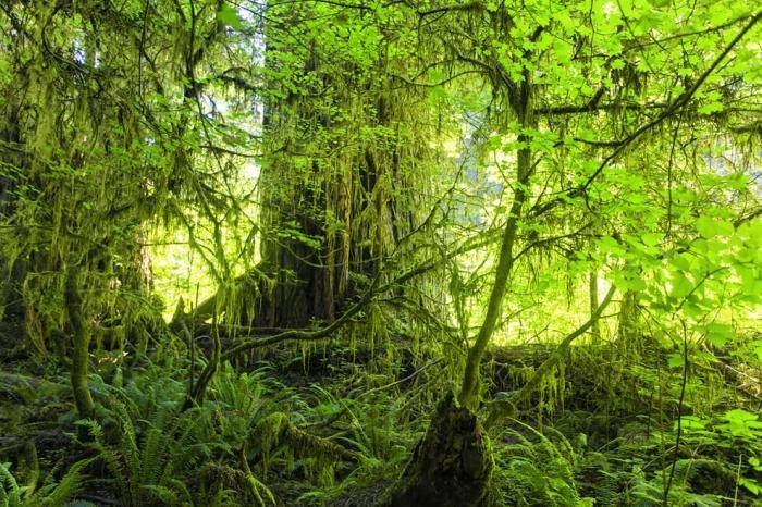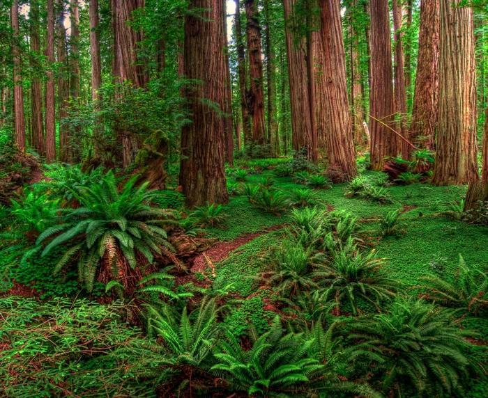 Великолепная зеленая поросль в тени под навесом красных деревьев. Джон Мьюр сказал: «Если потянуть за одну вещь в природе, можно обнаружить, что она прикреплена к остальной части мира». Фото: Джастин Керн