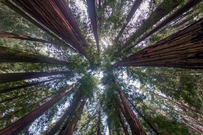 Невероятный полог в Мьюирском лесу. Предки красного дерева и гигантского секвойядендрона росли на территории Соединенных Штатов 150 миллионов лет назад. К началу 20 века большая часть этих лесов была вырублена. К северу от залива Сан-Франциско лес старовозрастных прибрежных красных деревьев известен как заповедник Мьюирский лес. Фото: Джастин Керн