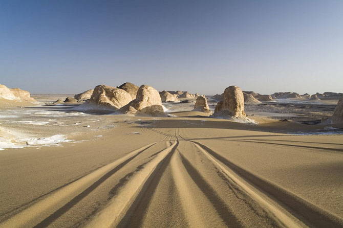 Известная как Сахара эль Бейда, где Сахара обозначает пустыню, эта бесплодная территория расположена в 45 км от города Фарафра. Она известна своим белым кремовым цветом и своими массивными горными формированиями из мела, которые являются результатом песчаных бурь. Белая Пустыня является одной из самых выдающихся достопримечательностей Египта.