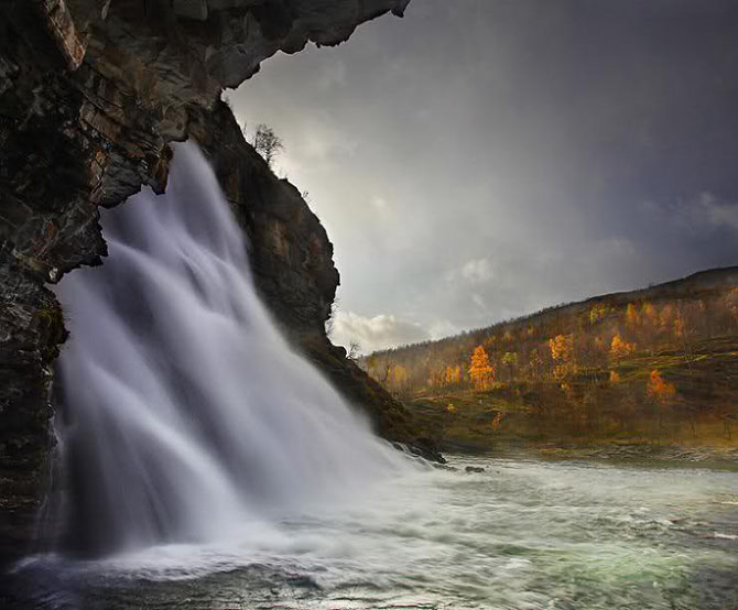 Водопад Ровийоки в норвежском городке Шиботн, знаменитом прежде всего благодаря своей астрофизической обсерватории, являющейся самой северной обсерваторией в мире.