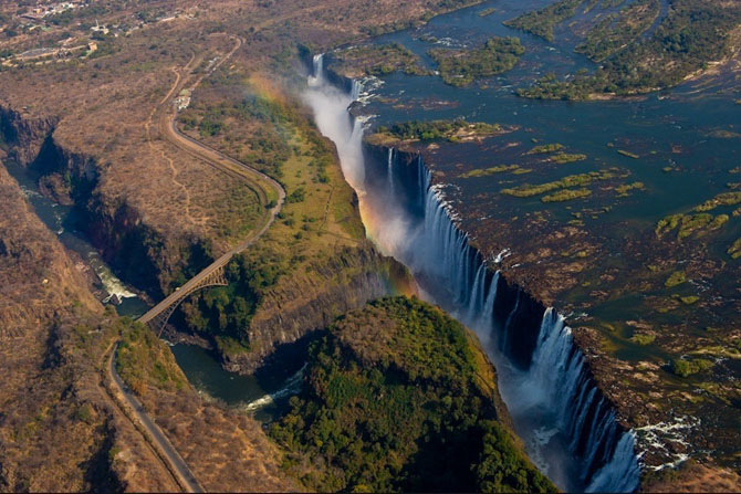 Водопад Виктория также носит название Гремящий Дым Африки из-за невообразимого гула, издаваемого тысячами литров воды, ежесекундно падающими в белую пучину поднимаемой ими же водной дымки. Виктория входит в число водопадов-гигантов, его высота составляет 108 метров. Своим официальным названием водопад обязан Дэвиду Ливингстону, исследователю из Шотландии. Он побывал здесь в 1855 году и был настолько восхищен красотой и могущественностью водопада, что назвал его именем королевы.