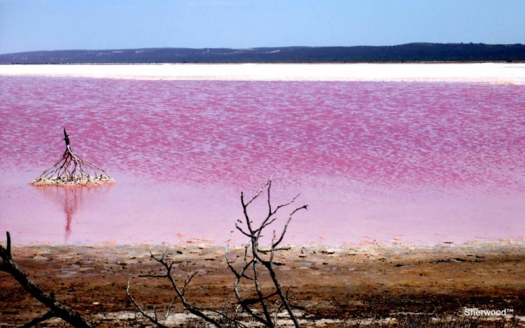 Розовое озеро в Австралии.