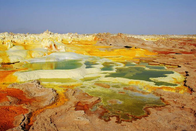 Что касается активности вулкана, то ученые заверяют, что в ближайшее время он не будет извергаться, поэтому путешествия в эту местность безопасны. В последний раз вулкан извергал магму еще в далеком 1926 году. Хочется отметить, что Даллол считается единственным вулканом на планете, который имеет кратер, расположенный ниже уровня моря. К тому же территория вулканического кратера является одним из самых жарких мест в мире, ведь показатель среднегодового значения температуры равняется в этом месте тридцати четырем градусам тепла.