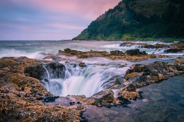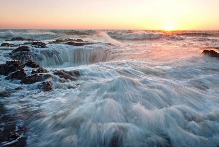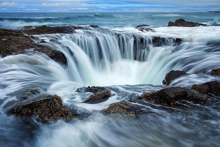 Колодец Тора – удивительная природная достопримечательность, которая находится на побережье Тихого океана на мысе Перпетуа в штате Орегон. Прибрежная полоса мыса имеет вулканическое происхождение и представляет собой нагромождение глыб, среди которых и скрывается колодец – огромная впадина, природная воронка, образовавшаяся среди острых каменных скал. Колодец Тора называют также Вратами преисподней.