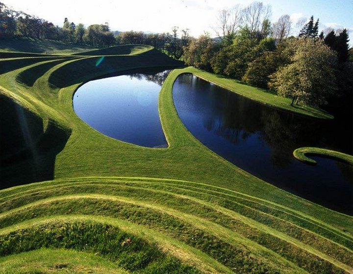 Самые необычные сады мира содержат живые инсталляции, дополняющие концепт территории и дарящие незабываемые впечатления своим посетителям. Например, The Garden of Cosmic Speculation, Scotland. Он оформлен с применением футуристических сюжетов, и не напрасно носит название сада космических спекуляций. Сад является частью поместья ландшафтного архитектора Чарльза Дженкса, и служит отличной рекламой, продвигающей талант своего владельца.