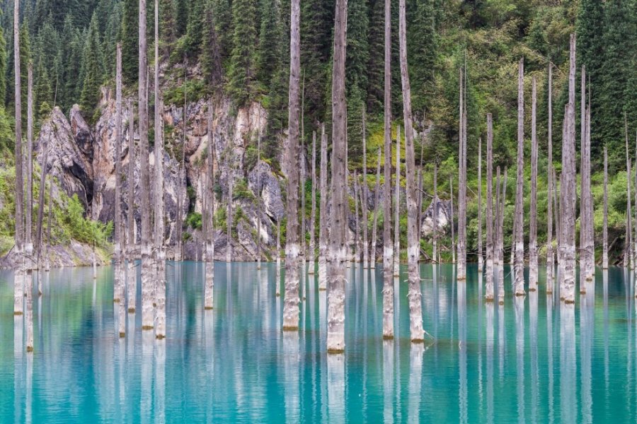 Озеро Каинды в Казахстане, образовавшееся в результате землетрясения в 1911 году, известно елями, которые вырастают прямо из воды.