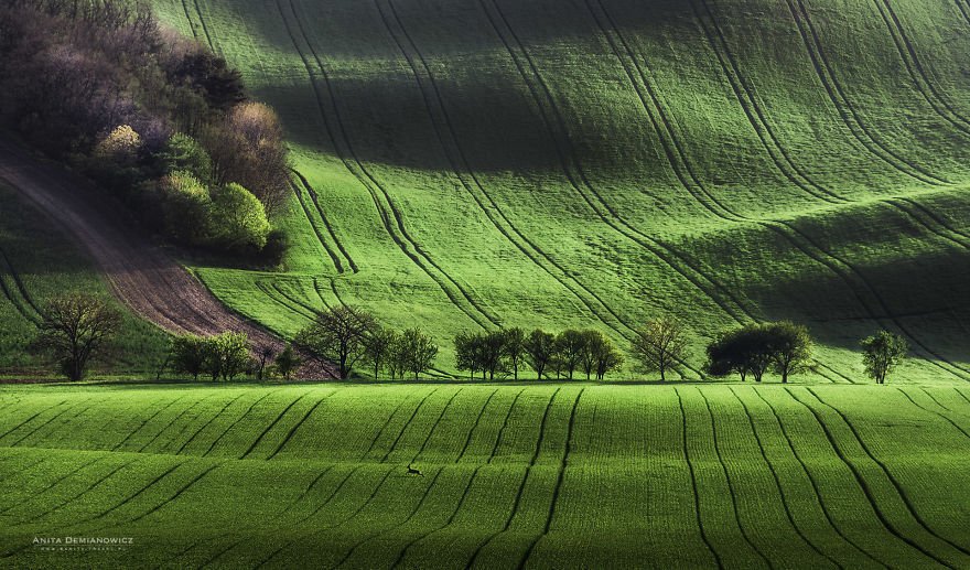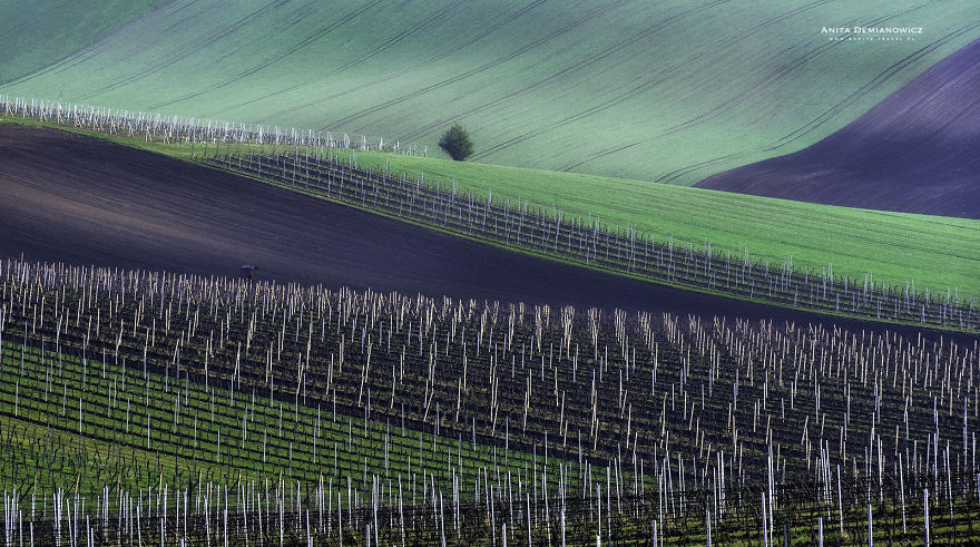 Южноморавский край в Чехии – одно из тех мест на Земле, где мечтает побывать любой фотограф-пейзажист. Весной и осенью на моравские поля стекаются фотографы со всего света. Побывала там и фотограф из Польши Anita Demianowicz, которая провела много часов, наблюдая за игрой света на укрытых сочной зеленью на холмах.