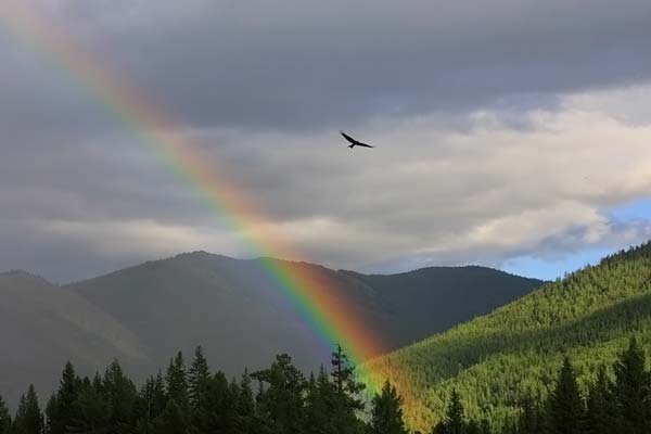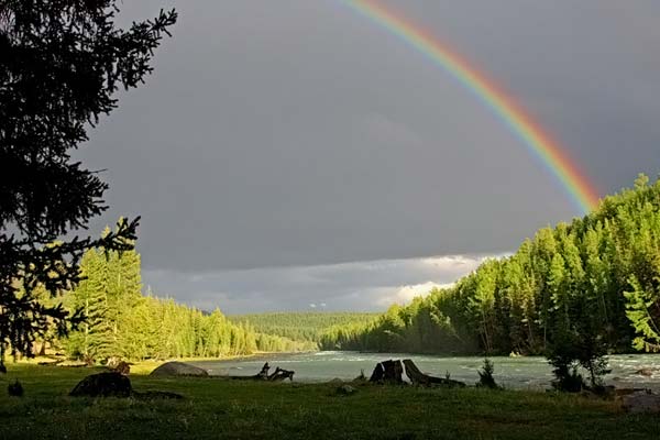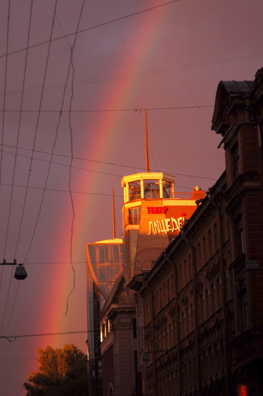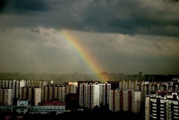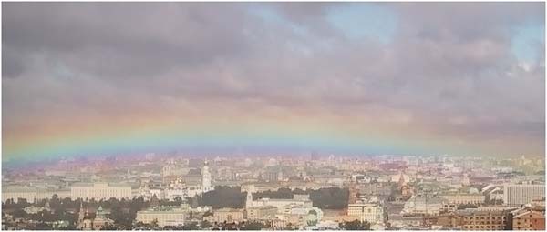 Радуга — атмосферное оптическое и метеорологическое явление, наблюдаемое обычно после дождя или перед ним. Оно выглядит как разноцветная дуга или окружность, составленная из цветов спектра (глядя снаружи — внутрь дуги: красный, оранжевый, жёлтый, зелёный, голубой, синий, фиолетовый. Эти семь цветов — основные названия цветов, которые принято выделять в радуге в русской культуре (возможно, вслед за Ньютоном, см. ниже), но следует иметь в виду, что на самом деле спектр непрерывен, и цвета эти в радуге переходят друг в друга с плавным изменением через множество промежуточных оттенков.
