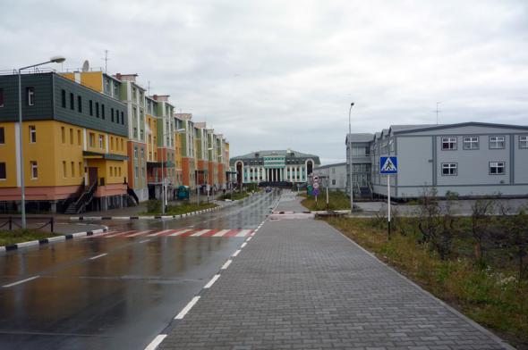 Анадырь встречает вас чистыми, практически идеальными дорогами и тротуарами. Дома выкрашены в веселые расцветки. Кругом разбиты газоны, расставлены лавочки, урны и т.п.