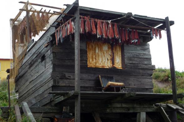 Пойманную рыбу в период нереста чукчи зачастую просто выбрасывают, поэтому если вам нужна рыба, то они вам с радостью ее отдадут совершенно бесплатно. Сами они, конечно же, тоже заготавливают рыбу и для себя. Рыба разрезается и подвешивается для вяленья в небольших сарайчиках, которыми буквально усыпан весь берег близ поселка Тавайваам.