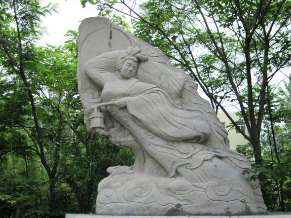 Эта девушка Чан-э — героиня знаменитой легенды, объясняющей смысл извечного единства Инь-Янь. Каждую осень китайцы отмечают великий праздник — Середина осени. Традиционным угощением является лунный пирожок, который перед употреблением следует показать полной луне, что видна в это время на небе. А следовательно, богиня Чан-э, обитающая на Луне, пошлет взамен счастье и благославление.