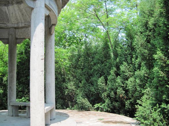 Гармония китайского классического парка заключается в уравновешивании натуральной красоты растений и творений рук человеческих. Поэтому так естественно вписываются в общую картину различные элементы малой архитектуры и скульптуры.