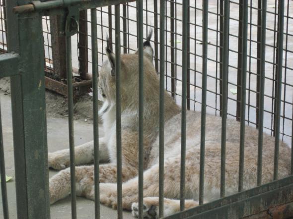 Не менее популярны дикие кошечки. Тигр, сибирский, всё время спал, да и не так уж он нам интересен. Видели-знаем. Вот леопард — другое дело. Одна беда — здешнему лепардику, хвост прищемило. Не хватает хвоста...