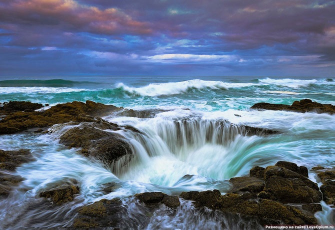Колодец Тора – это удивительное творение природы расположено на мысе Перпетуа в американском штате Орегон. В то время, когда начинается прилив, вода, которая стекает в него, создает непревзойденную красоту и манящую таинственность. В это время Колодец Тора кажется настоящими вратами в подземный мир.