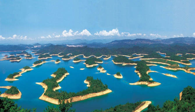 В 150 километрах от города Ханчжоу расположено необыкновенной красоты озеро Цяньдяоху. На этом озере находятся более 400 маленьких и больших удивительно красивых островов.