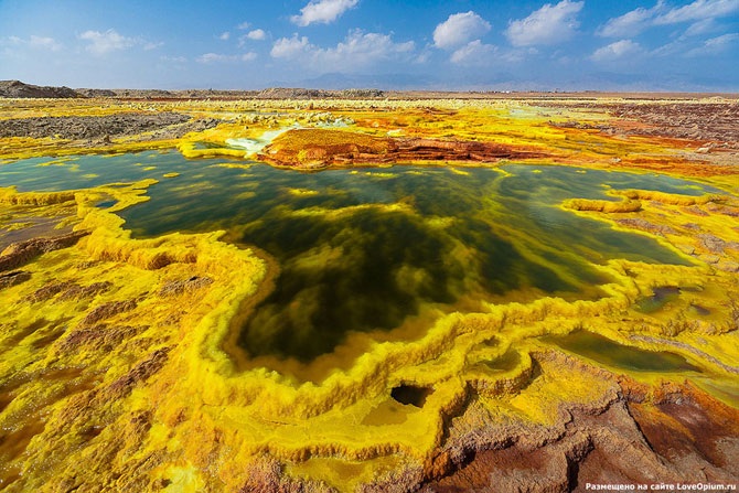 Посреди пустыни в Эфиопии находится самый низкий наземный вулкан на нашей планете — Даллол, вершина которого расположена на высоте 48 метров ниже уровня моря.