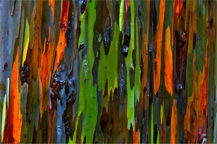 Это кора радужного эвкалипта, необычного дерева из Новой Гвинее. Свое название радужный эвкалипт получил благодаря уникальному свойству древесины, которая в зависимости от времен года, возраста и толщины дерева имеет разные цветовые оттенки волокон.
