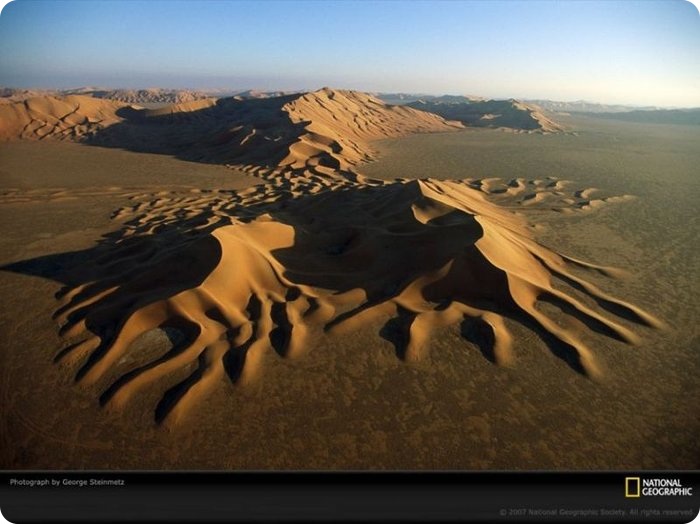 Границы четырех стран – Саудовской Аравии, Омана, Йемена и ОАЭ – неясное пятно под поднимающимися песками пустыни Руб-эль-Хали.