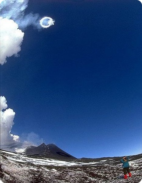 выдувает дымовые кольца высоко в небо! Последний раз схожее чудо можно было наблюдать в 2000 году у вулкана Этна. Кольца Эйяфьятлайокудля плавали в небе около пяти минут и Джозеф Ликшиарди считает что ему невероятно повезло – зафиксировать данные кадры.