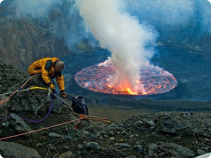 Фотографии кратера вулкана Nyiragongo. Этот вулкан расположен в центре района Великих Озер в Африке.