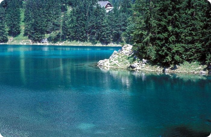 В Австрии есть удивительно место – Gruner See (Зелёное озеро). С августа по апрель — это зелёный парк с тропинками, лавочками, зелёными полянами.