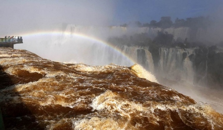 Знаменитые водопады Игуасу, расположенные на границе Бразилии и Аргентины, которые считаются одними из самых крупных и красивых в мире, несколько дней назад превратились в адскую бездну. Сильные ливни, обрушившиеся на центральную часть Южной Америки, вызвали наводнения, из-за чего вышла из берегов река Парана, разделяющая Бразилию и Аргентину. И как результат — водопады дополнительно приняли миллионы кубометров воды. Природное чудо на несколько дней было закрыто для посетителей. Сейчас уровень воды уже стал спадать и смотровые площадки начали принимать посетителей.