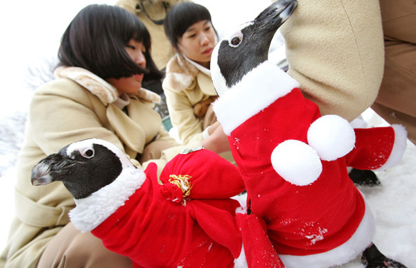 В Южной Корее в самом большом луна-парке города Yogin прошло шоу пингвинов, переодетых в Санта Клаусов. Вся страна постепенно готовиться к наступающему Новому Году, а раз Южная Корея - единственная Восточноазиатская страна, признающая Рождество как праздник.