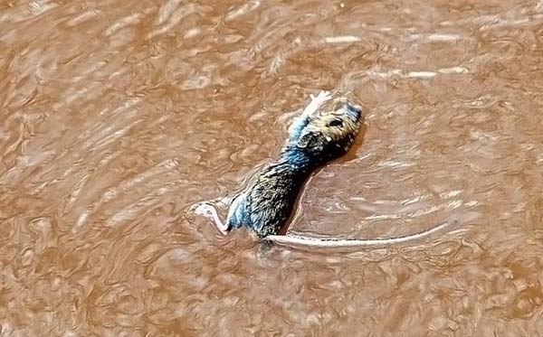 Соломину с мышом прибило к берегу. Зверек ловко переполз на сушу и был таков.
