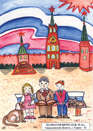 ВЯЧЕСЛАВ БАЛМАСОВ, 10 ЛЕТ, ГОРОД СЕРОВ — 12, СВЕРДЛОВСКАЯ ОБЛ.: Медведев на Красной площади читает детям Конституцию