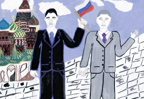 ЭЛЬЗА ГАБДРАХМАНОВА, 13 ЛЕТ (МОСКВА): Владимир Путин и Дмитрий Медведев на Васильевском спуске отмечают победу в выборах