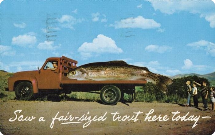 В начале 20 века некоторые фотографы в США специализировались на изготовлении «Открыток–небылиц», или «Tall Tale Postcards». Эти открытки, как правило, рассказывали о невероятных природных богатствах того или иного региона. Создавая утопический миф о регионе, открытки должны были способствовать увеличению притока населения и развития поселений. Основные направления фотомонтажа — рыбалка, сельскохозяйственная продукция и охота. К чести фотохудожников, они не ограничивались только фотомонтажом, а работали с натурой — создавали художественные композиции, фотографировали их, и затем дополняли фотографии различными гигантскими невероятностями.