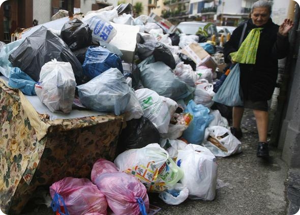 Женщина проходит мимо куч мусора в центре Неаполя. В городе наконец началась уборка отходов: сотни солдат начали борьбу с тысячами тонн мусора. (Ciro Messere/Reuters)