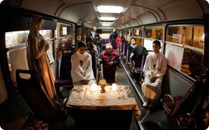 26. Бездомные на службе в автобусе в Ницце 25 декабря. (REUTERS/Eric Gaillard)