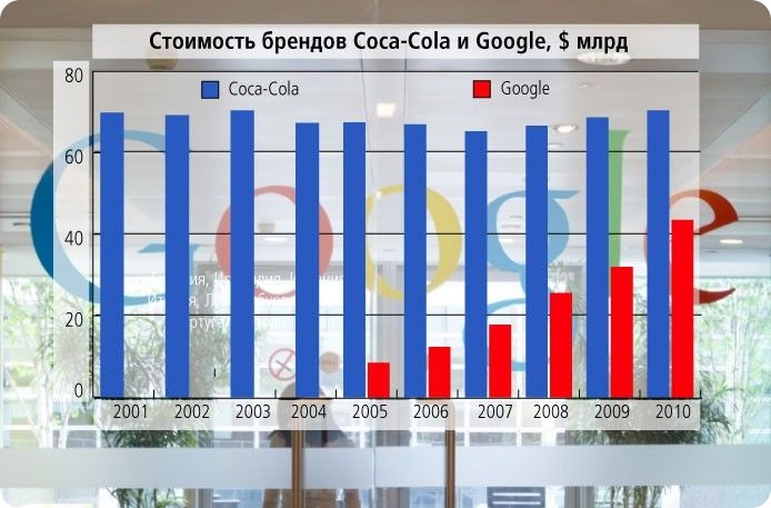 Google Search. AdSense. Gmail. Google.Maps. Youtube. Android. Chrome. Комментарии по поводу главной компании 2000-х излишни. В рейтинге самых дорогих брендов по версии Interbrand Google стремительно догоняет главную торговую марку последних десятилетий — Coca-Cola. Не хватает совсем чуть-чуть — возможно, собственного Санта-Клауса.