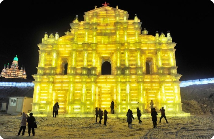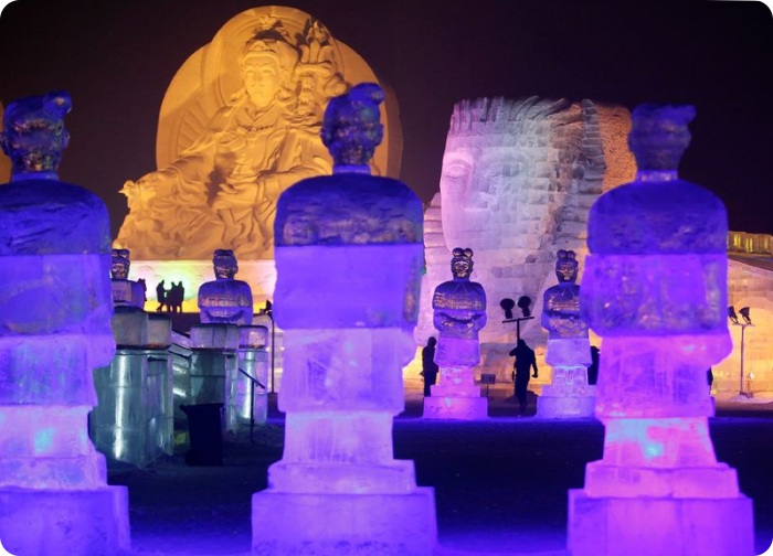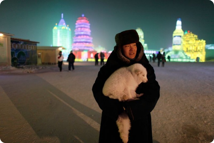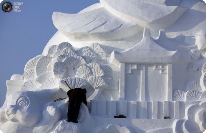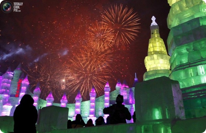 В холодном северо-восточном Китае в городе Харбине проходит 26-ой Международный фестиваль снега и льда. В нескольких парках города можно найти массивные здания изо льда, нависшие над рекой Сунхуа, большие ледяные скульптуры в натуральную величину, ледяные горки, еду и напитки. Ночью включаются огни, и замерзшие зрители видят, как скульптуры подсвечиваются как изнутри, так и снаружи. Фестиваль в этом году открылся 5 января и продлится до февраля.