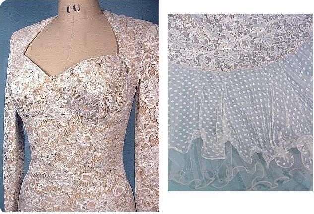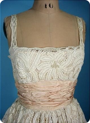 11.Свадебное платье из кружевного гипюра с поясом из тафты, 1950-е года