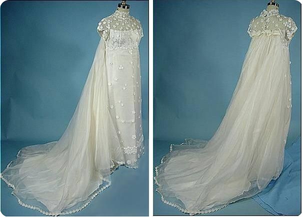 14.Свадебное платье из органзы, украшенное вышивкой, со съёмным шлейфом. 1974 год