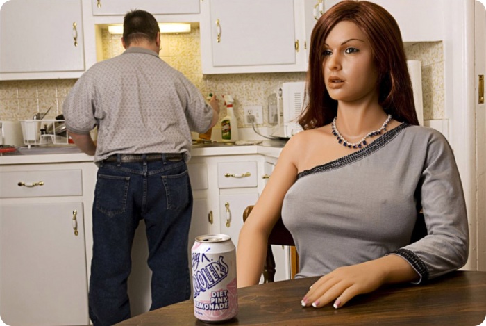 18. Матек моет посуду, пока Фиби – одна из его силиконовых подружек – отдыхает. Он купил Фиби в 2004 году, чтобы заполнить пустоту в жизни. «Она не из тех вещей, что можно купить и забросить в чулан. Жить с куклой – все равно, что заботиться об инвалиде. Вам приходится все делать за нее». Анатомически она отвечает всем стандартам нормальной женщины, но сексом они занимаются нечасто, признается Матек. «Она как плюшевый мишка». Ему нравится придавать Фиби образ девушки Бонда. «Она шикарна и довольно осторожна. Я одеваю ее только на фотосессии, потому что из нее получается отличная модель». (Stephan Gladieu/Getty Images)