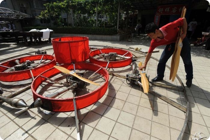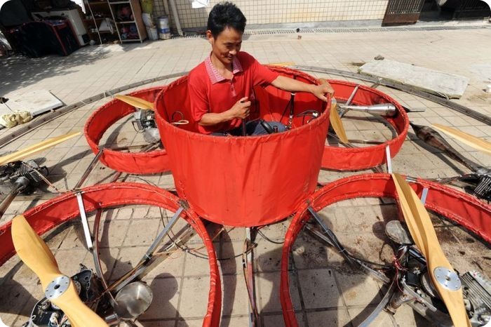 На этот раз китайскому фермеру удалось подняться на высоту 2 метра, сидя в кабине летательного аппарата.