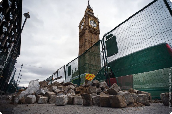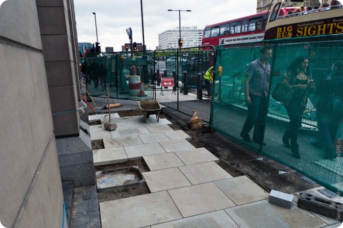 В центре Лондона снимают брусчатку!