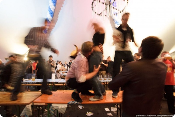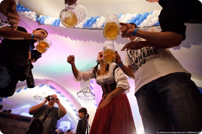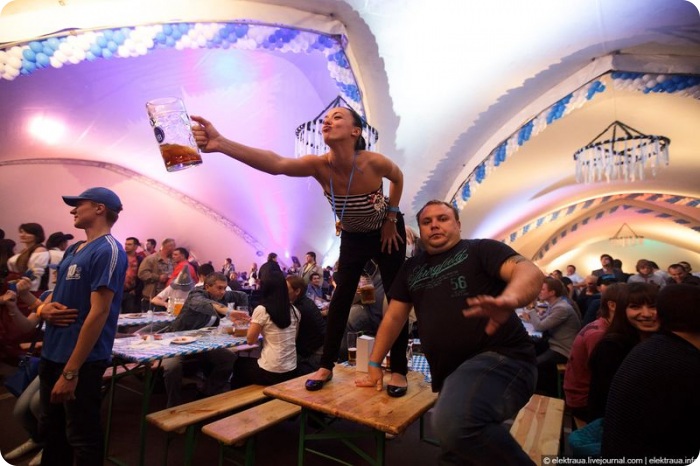 Октоберфест посетили разные творческие люди, такие как Лепреконсы и Николай Валуев. Приятно подготовили девочек для разогрева, которе кроме того что танцевали, объясняли посетителям, как нужно правильно пить пиво: нужно тарабанить руками об стол, при этом выкрикивая сложноразбираемые звуки, после чего стараться выпить залпом как можно больше