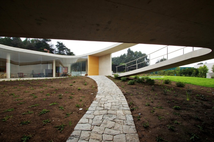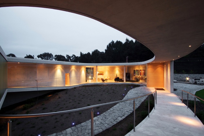 4. Дорожки проходят вокруг дома и сквозь него, внутренний двор в буквальном смысле внутренний, холмистая местность интегрирована в дизайн и обыграна наилучшим образом.