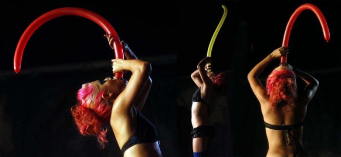 19. Джей Ли Бейт глотает надутые воздушные шары.