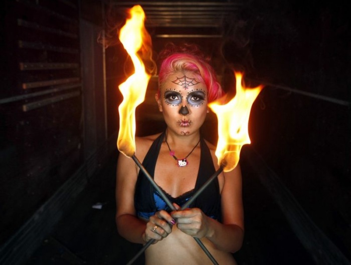 8. Джей Ли Бейт из Мехико. «Я – пожирательница огня и иллюзионистка», рассказывает она. «Раньше я работала мимом в Далласе, но потом решила присоединиться к цирку Брюса».